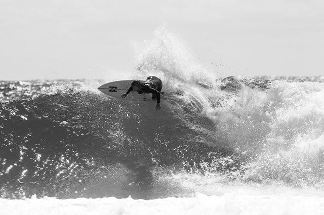 A pulled-in tail gives you control for turns and barrels in more critical conditions, while a touch more curve in the exit rocker adds manoeuvrability and release out of the lip. Moderate single concave starts under front foot, moving to double just before the fins to provide lift and more intuitive rail-to-rail transitions. Then finally, there’s Occ’s favourite part – as he calls it, the “Raging Bull thickness”. Essentially, this refers to JS maintaining a strategically generous distribution of volume throughout the board that goes hand in hand with thicker stock dimensions. This is the key to more paddle power, gliding over flat sections, and to again quote Occ, “lets you leave it on rail forever.”